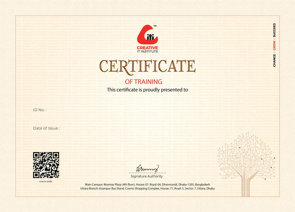 Son of Md. Abdul Alim Sheikh & Mst. Foreda Begum has successfully completed the Industrial Attachment in Professional Web Development course held on 02 July, 2024 to 02 October, 2024 at Creative IT Institute.